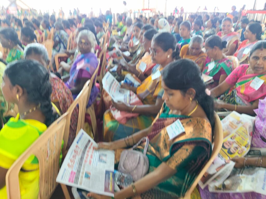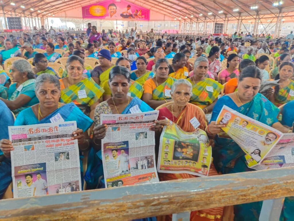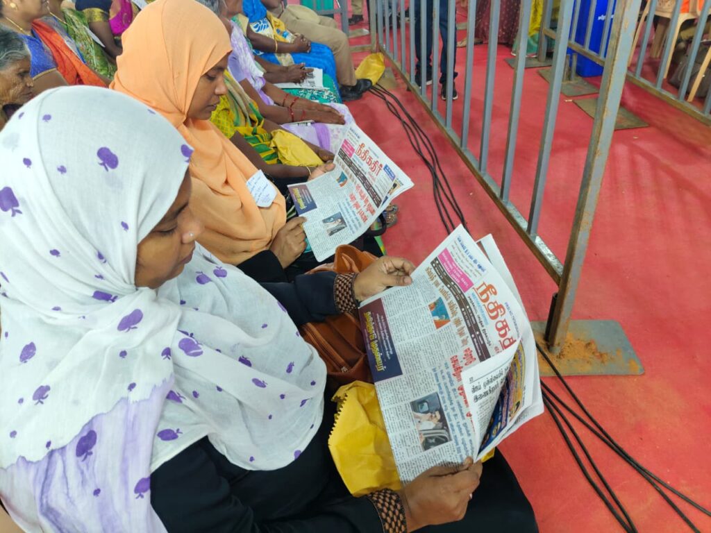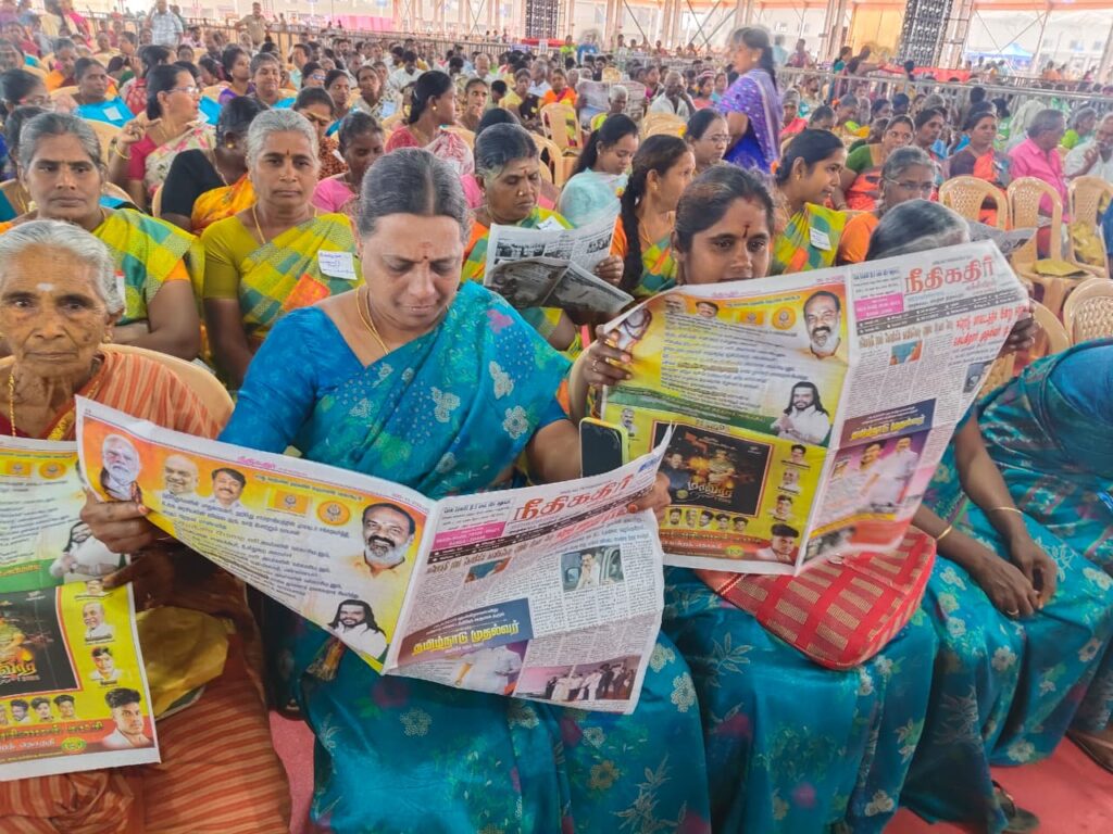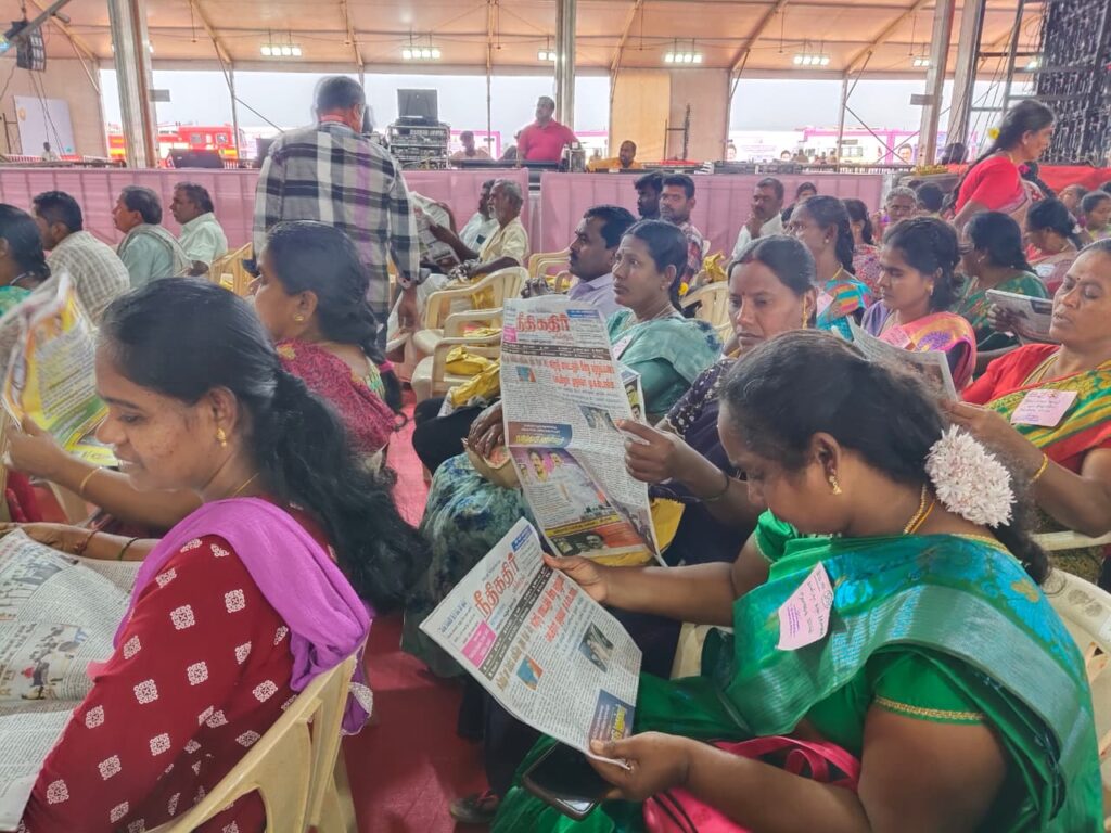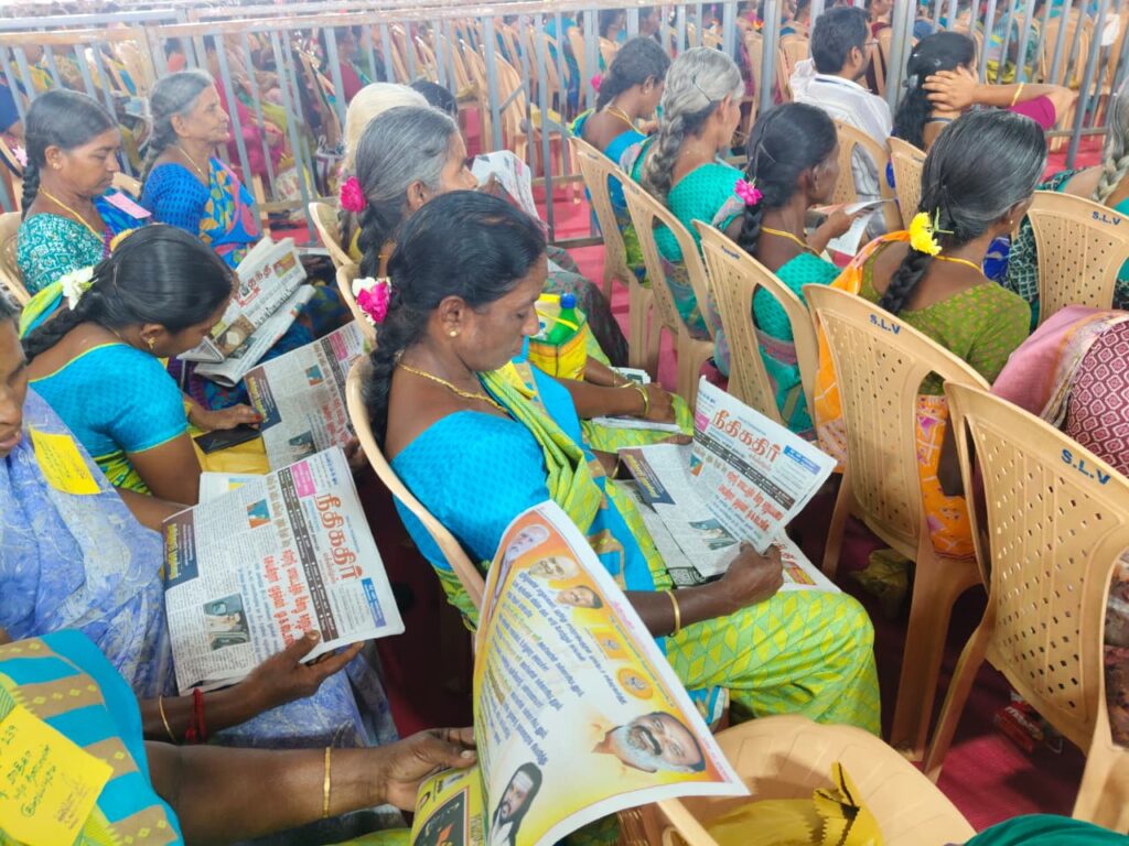ஈரோட்டில் நடைபெற்ற தமிழக முதல்வர் மு க ஸ்டாலின் கலந்து கொண்ட அரசு விழாவில் நமது நீதி கதிர் எக்ஸ்பிரஸ் நாளிதழை ஆர்வமுடன் வாங்கி படிக்கும் பொதுமக்கள்.