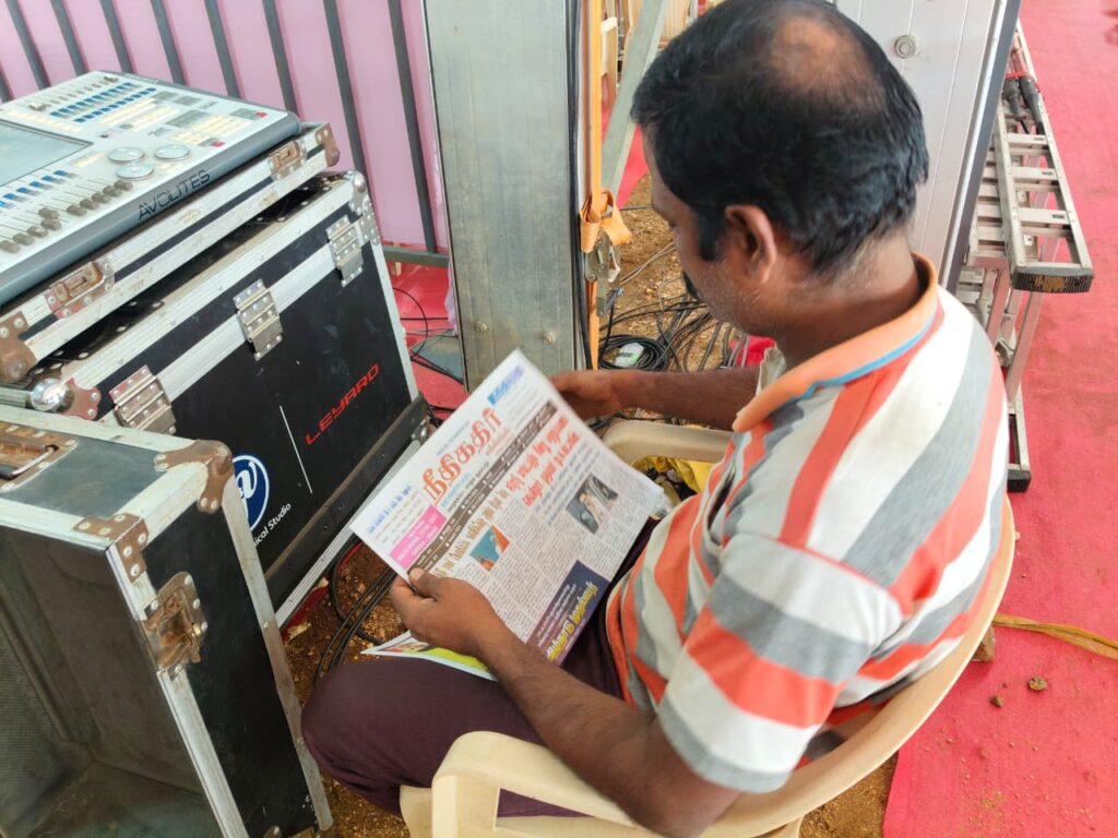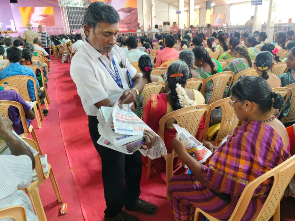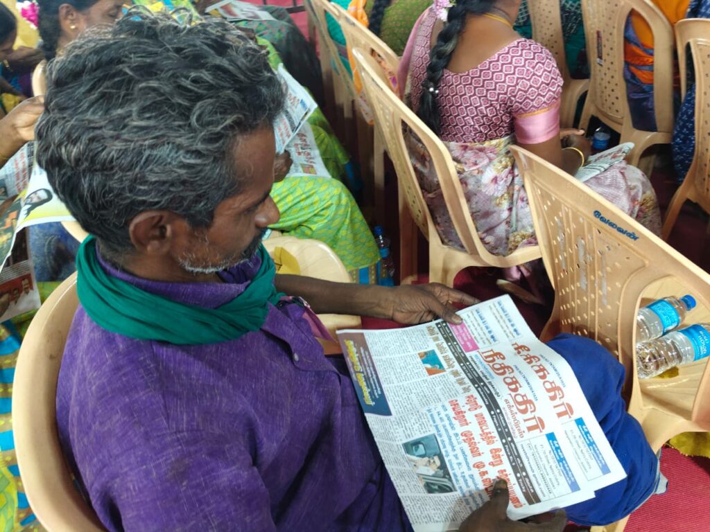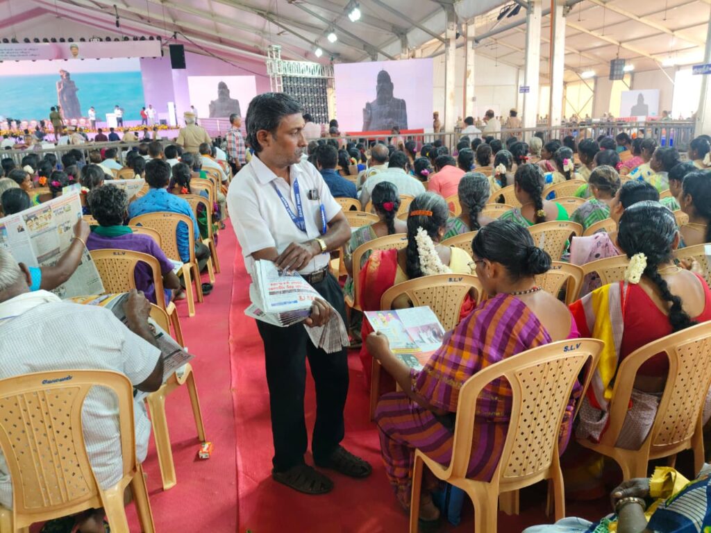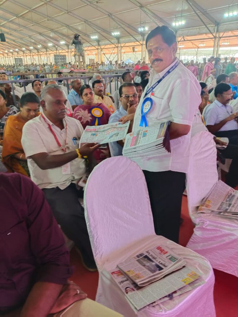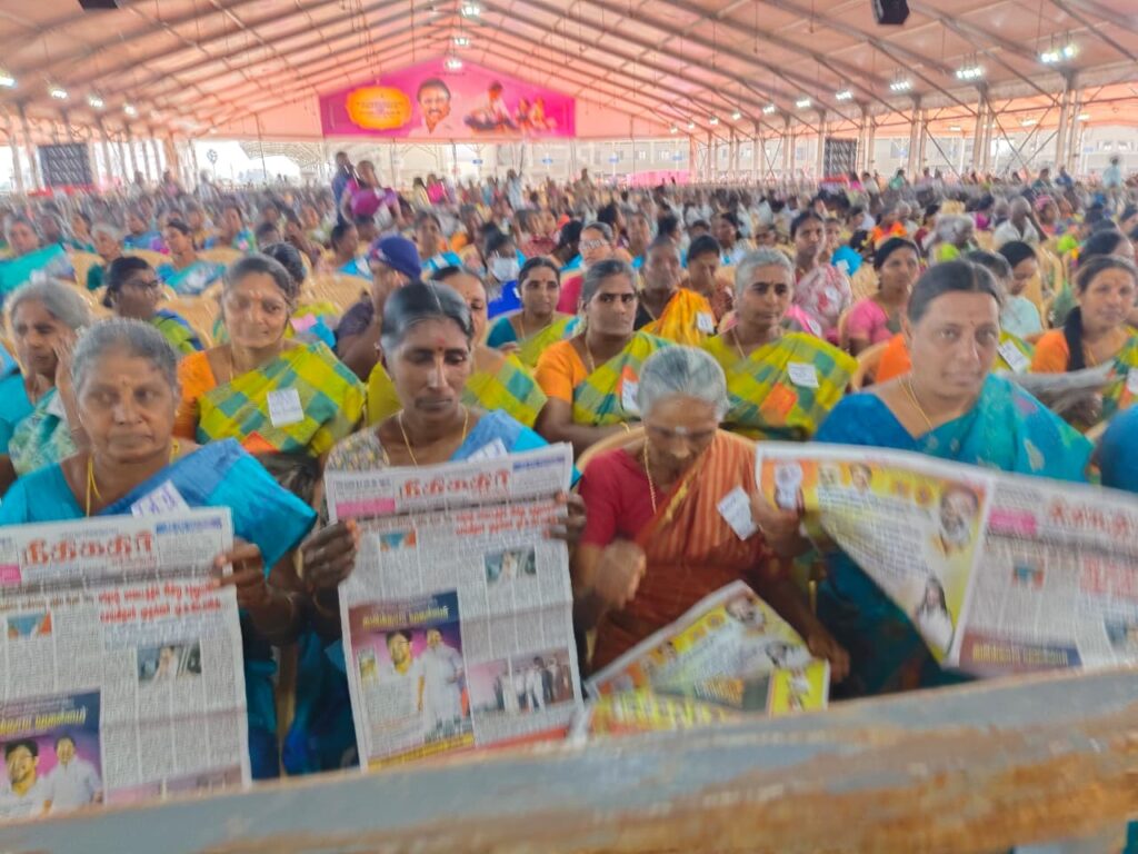 ஈரோட்டில் நடைபெற்ற தமிழக முதல்வர் மு க ஸ்டாலின் கலந்து கொண்ட அரசு விழாவில் நமது நீதி கதிர் எக்ஸ்பிரஸ் நாளிதழை ஆர்வமுடன் வாங்கி படிக்கும் பொதுமக்கள்.