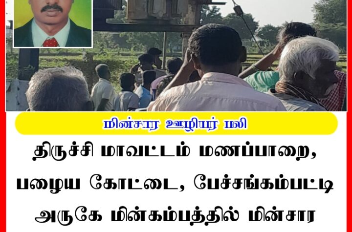 திருச்சி மாவட்டம் மணப்பாறை, பழைய கோட்டை, பேச்சங்கம்பட்டி அருகே மின்கம்பத்தில் மின்சார ஊழியர் பலி வையம்பட்டி போலீசார் விசாரணை....