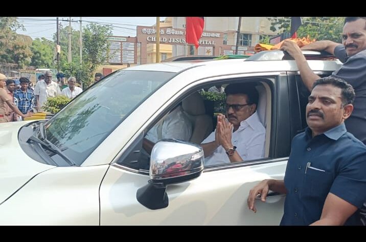 மதிமுக பொதுச்செயலாளர் வைகோ மேற்கொள்ள உள்ள “சமத்துவ நடை பயணம்” துவக்கிவைக்கக திருச்சி வருகை தந்த முதலமைச்சர் மு...