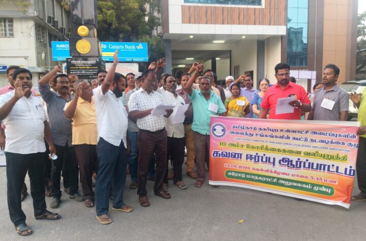தமிழ்நாடு நகர்ப்புற உள்ளாட்சி அமைப்புகளின் சங்கங்கள் சார்பில் நடைபெற்றது.. ஈரோடு. பிப். 15 ஈரோடு மாநகராட்சி அலுவலகம் முன்பாக...
