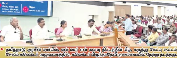 சேலம் கலெக்டர் அலுவலகத்தில் என் ஊர் என் கனவு திட்டம் தயாரிப்பது குறித்து கலந்தாய்வு. சேலம் கலெக்டர் அலுவலகத்தில்...