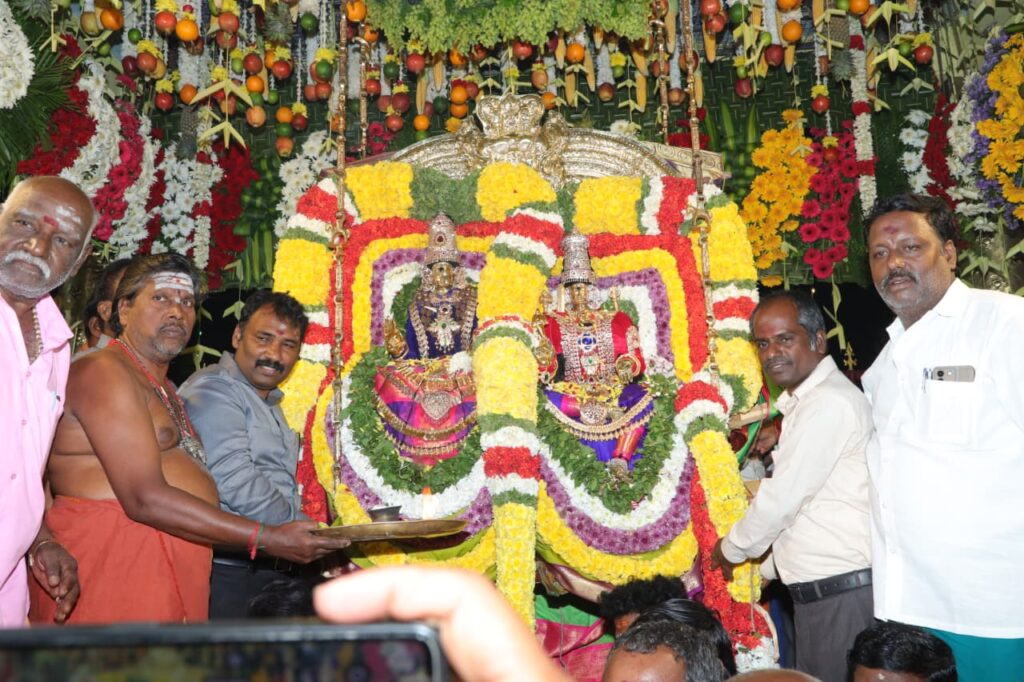 அறங்காவலர் குழு தலைவர் ஏழுமலை பூசாரி மற்றும் பிற அறங்காவலர்கள் ஊஞ்சல் உற்சவத்தில் கலந்து கொண்டு சாமி தரிசனம் செய்தனர்