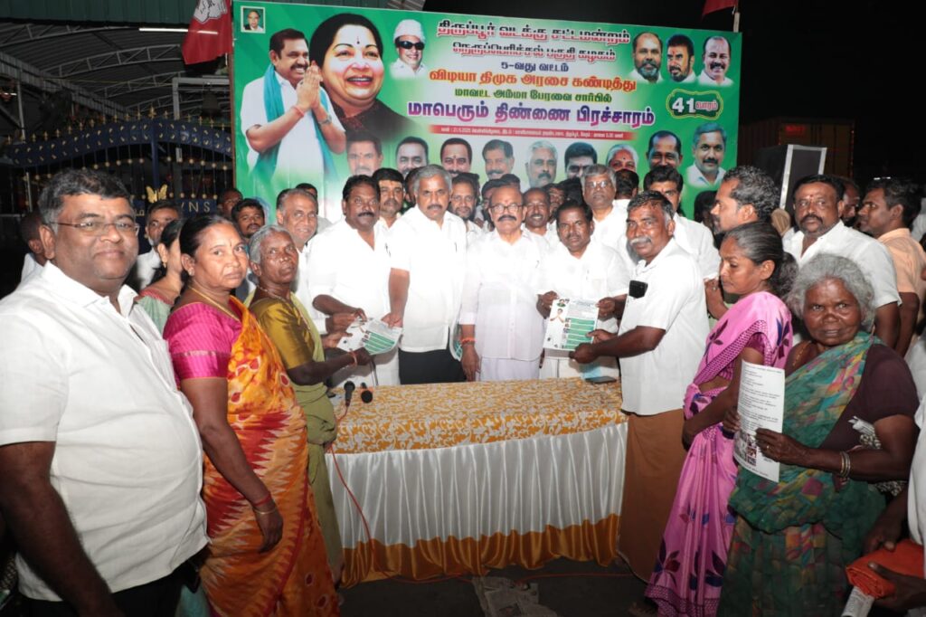 பொள்ளாச்சி.ஜெயராமன் எம்எல்ஏ வீடு வீடாக சென்று பொதுமக்களுக்கு வழங்கி திண்ணை பிரச்சாரத்தில் ஈடுபட்டார் திருப்பூர் வடக்கு சட்டமன்ற உறுப்பினர்.