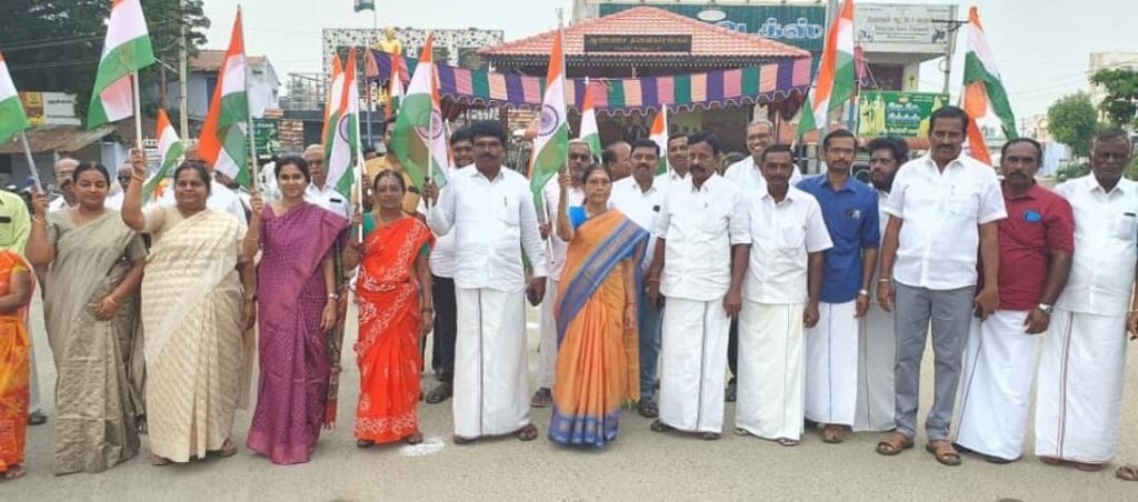 தொடர்ந்து இந்திய தேசிய கொடியை ஏந்தி அனைவரும் பேரணியாக சென்று வந்தே மாதரம் பாடலை பாடினார்.